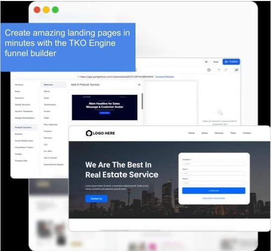TKO Engine is a Full Suite Platform for Marketers. Included in the Platform is a full featured Page Builder to capture leads.